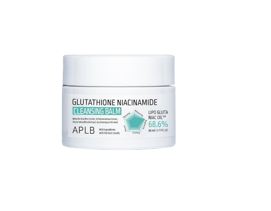 El APLB Glutathione Niacinamide Cleansing Balm 80ml es un limpiador en bálsamo que se transforma en aceite al contacto con la piel, ayudando a disolver maquillaje, protector solar y acumulación de impurezas. Su fórmula combina glutatión y niacinamida, ingredientes conocidos por ayudar a mejorar la luminosidad de la piel y favorecer un tono más uniforme.