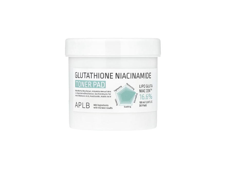 El APLB Glutathione Niacinamide Toner Pad 100ml consiste en discos de algodón ya impregnados con tónico, diseñados para refrescar la piel y prepararla para los siguientes pasos de la rutina. Su fórmula combina glutatión y niacinamida, ingredientes conocidos por ayudar a mejorar la luminosidad y a favorecer un tono de piel más uniforme.